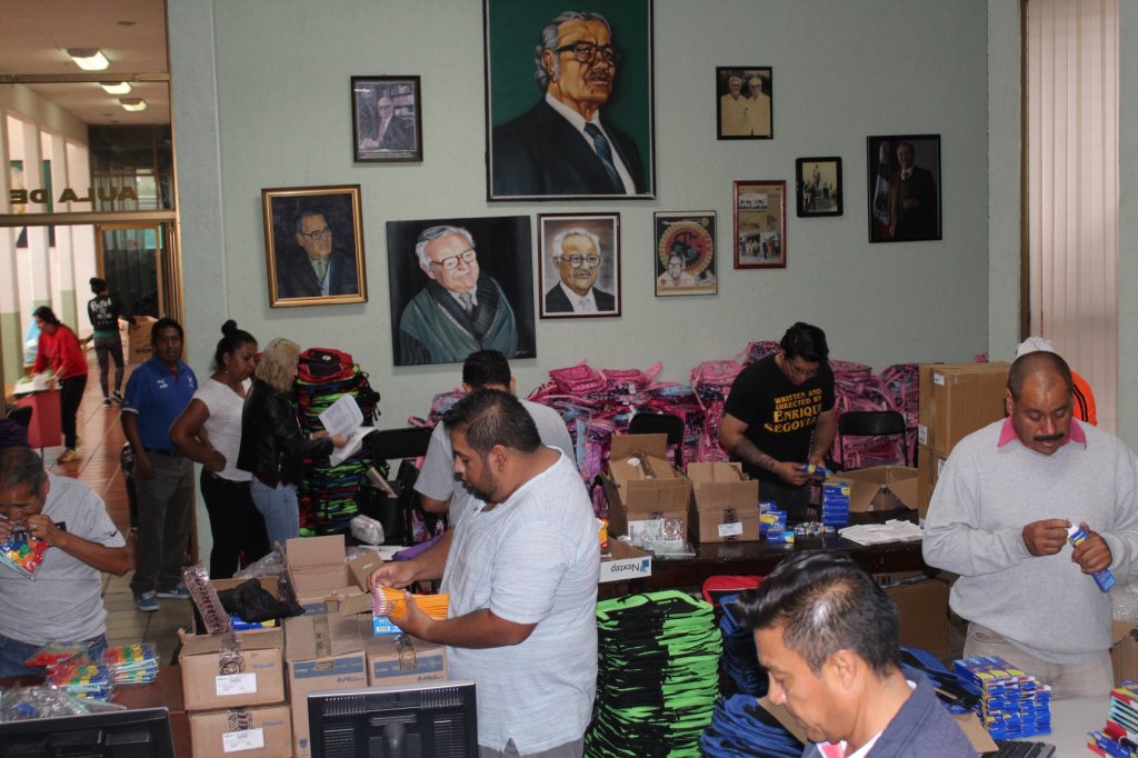 El equipo del Sindicato Industrial Serigráfico CTM, realizó los paquetes de útiles escolares que se entregarán a los hijos de los trabajadores de las empresas afiliadas a ésta Federación.