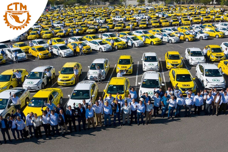 El compañero Julio César Hernández Subsecretario de Transporte y los trabajadores del servicio de transporte público del gremio de taxistas afiliados a CTM, presentes en el arranque del programa de taxímetro.
