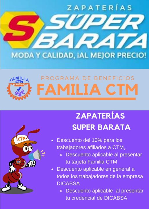 Esta Central Obrera, en apoyo de las familias de los trabajadores del Estado creó «Familia CTM», un programa de beneficios que te da acceso a precios y descuentos exclusivos en diferentes establecimientos.Buscando la estabilidad económica de los trabajadores en el Estado de Querétaro hemos logrado una expansión del programa «Familia CTM» en el municipio de Ezequiel Montes, esperamos pronto seguir con esta expansión a más municipios y empresas.Es indispensable presentar tu credencial de afiliado para hacer válidos los descuentos.¡Afíliate ya!José Cruz Araujo ÁvilaSecretario General