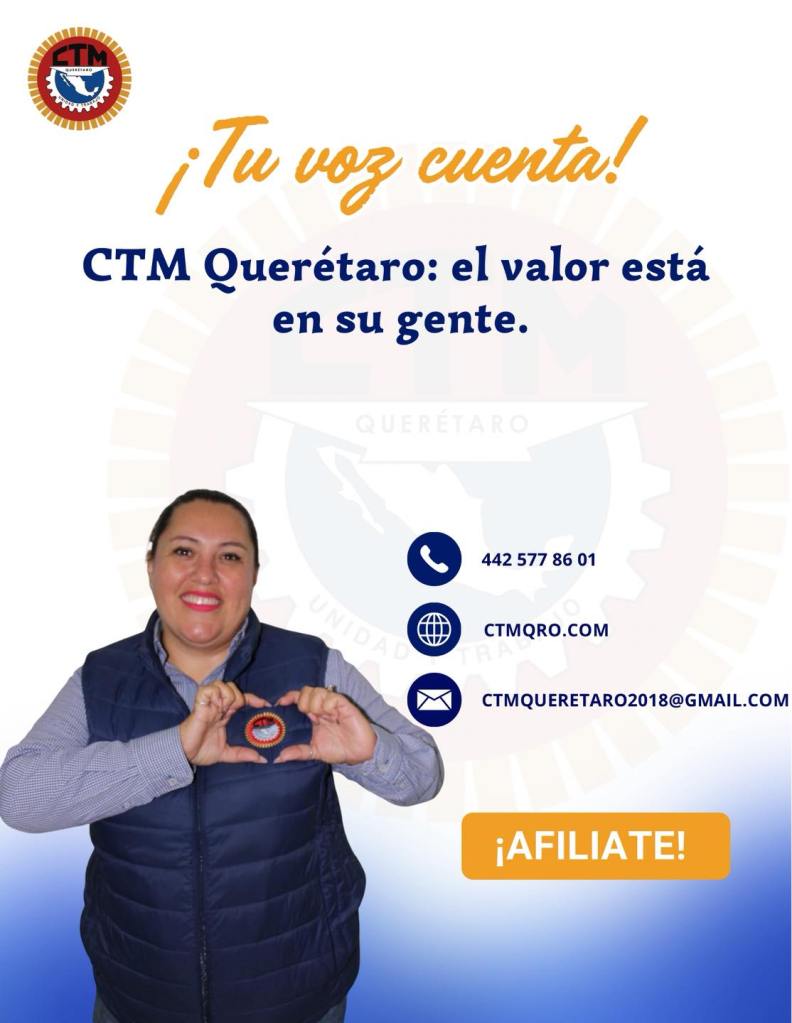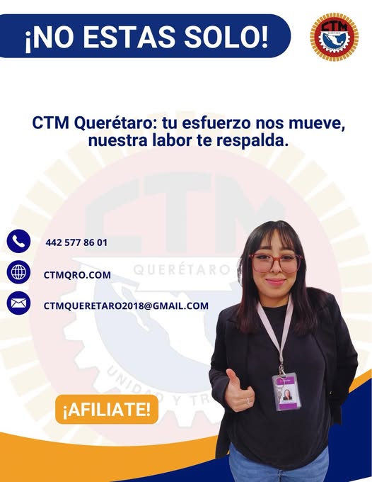 En la CTM Querétaro estamos contigo para brindarte asesoría legal, respaldo y acompañamiento laboral, porque tu trabajo merece respeto y seguridad.